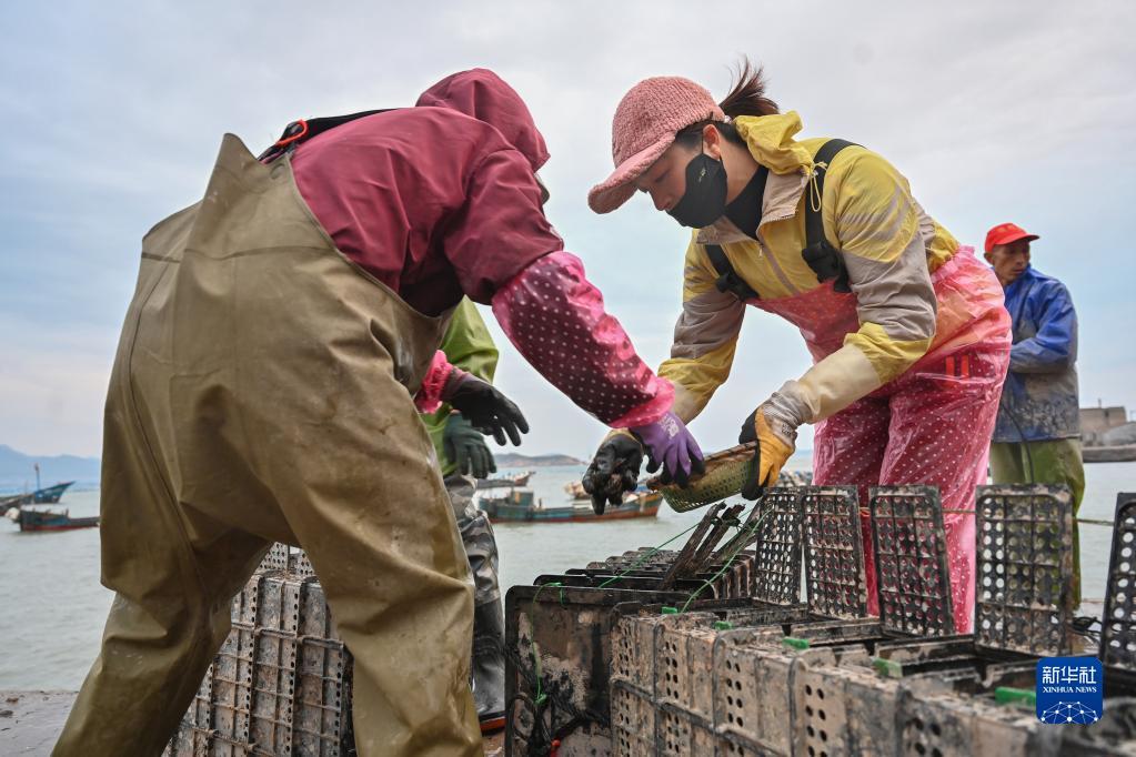 12月13日,在福建賓利零件省連江縣后灣碼賓士零件頭,村民在分裝鮑魚。